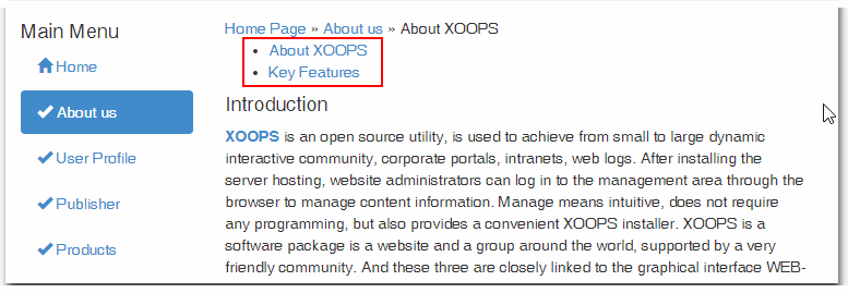 Once you complete your About Us pages, the user might see something like this, as it is done in the default setting: