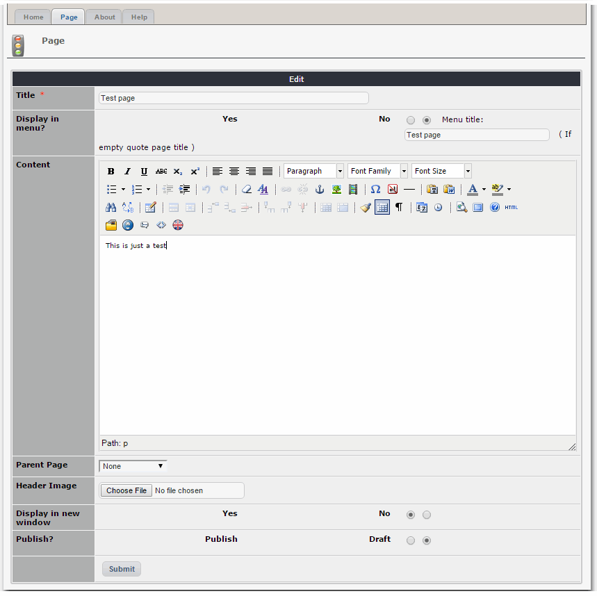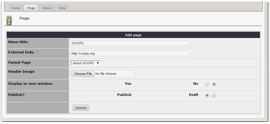 (2) After you have finished adding information, click on the "Submit" button to save it. At this point you have successfully finished adding a page. You will see your page added in reference. After you have added you will be able to edit and delete pages.